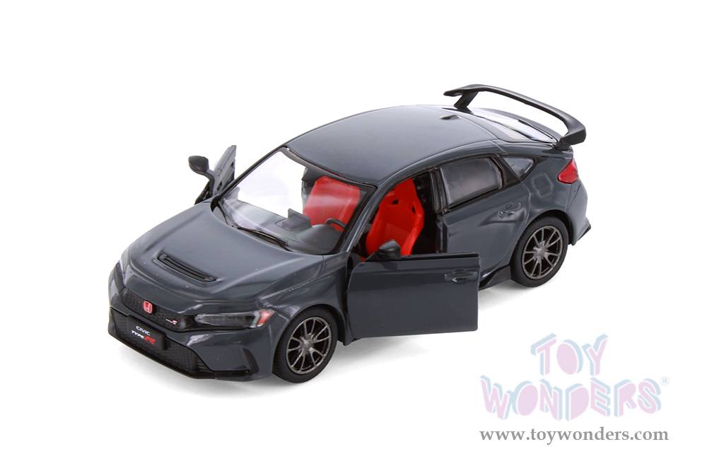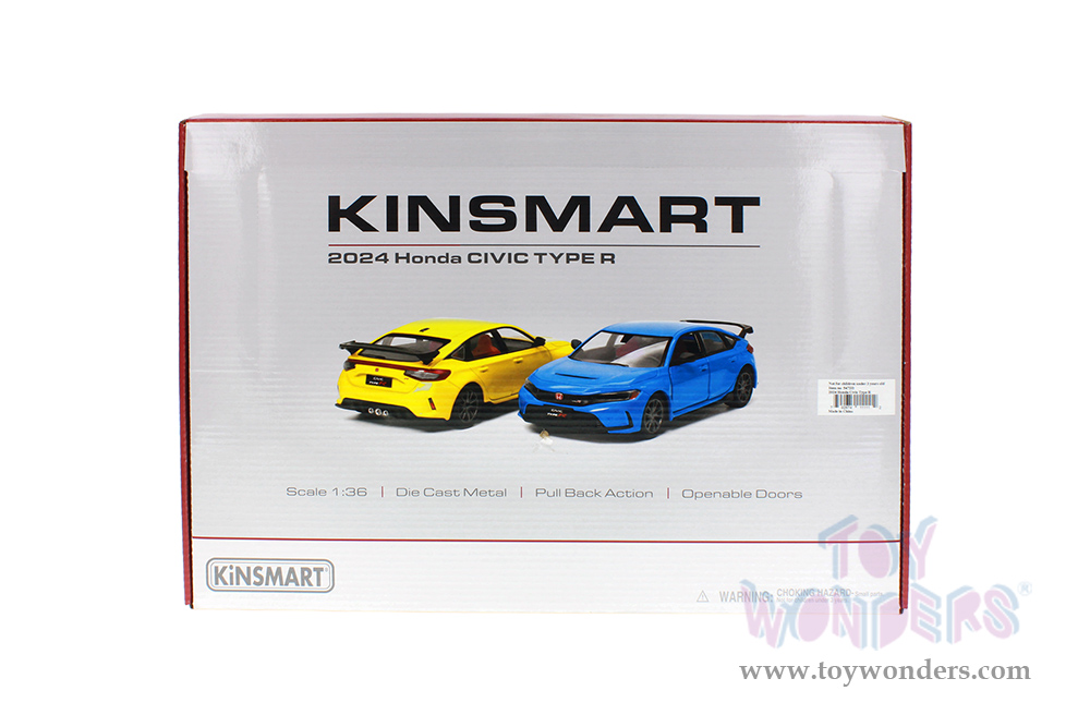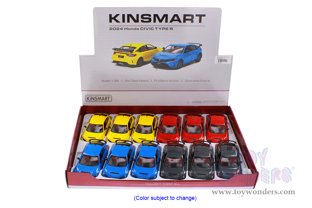 5472D Kinsmart - 2024 Honda Civic Type R. 1:36 scale diecast collectible model car. This Honda Civic is a 5"L x 2"W x 1.5"H diecast metal car with openable doors and pull back action. This Honda Civic Type R is manufactured by Kinsmart. 12 pcs per display box in assorted colors. 72 pcs per inner.