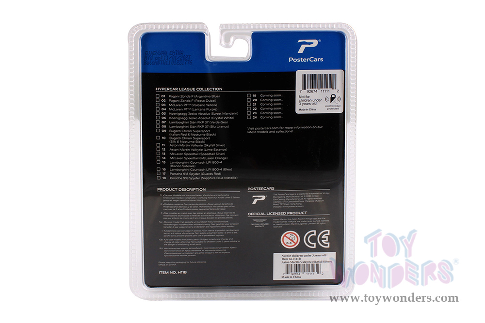 Kinsmart - PosterCars Hypercar League Collection | Aston Martin Valkyrie (1/64 Scale diecast model car, Skyfall Silver) H11B