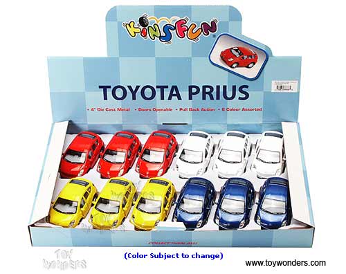 4025D Kinsmart - Toyota Prius Hard Top. This Toyota Prius is a 4"L x 2"W x 1.75"H diecast metal car. Features openable doors and pull back action. This Toyota Prius is manufacture by Kinsfun/ Kinsmart Toys. 12 pcs per display box in assorted colors. Inner: 72 pcs.