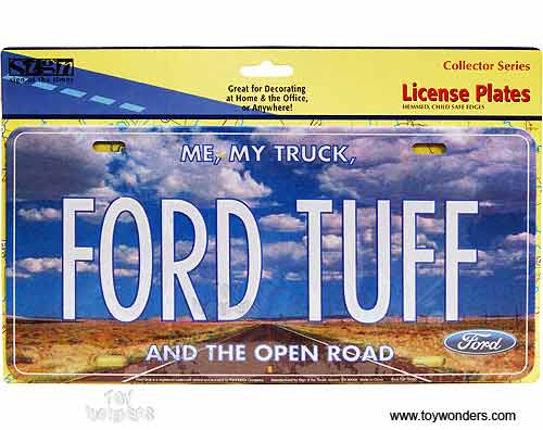 L12050 License Plate - Ford Tuff embossed aluminum metal sign. A collection of license plates. Great for decorating vehicles, homes, offices, restaurants, etc. Sturdy aluminum. This license plate is approximately 6" x 12" with shrink wrap and pre-drilled holes. Each license plate is individually blister carded. Card size: 12.1"L x 8"W.