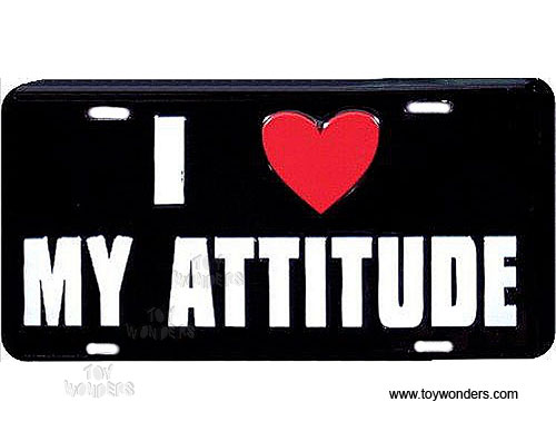 SL98 License Plate - I Love My Attitude embossed aluminum metal sign. A collection of license plates. Great for decorating vehicles, homes, offices, restaurants, etc. Sturdy aluminum. This license plate is approximately 6" x 12" with shrink wrap and pre-drilled holes.