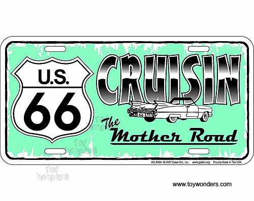 License Plate: Route 66 Cruisin The Mother Road Turquoise Sign SLR664