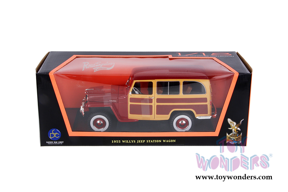 Lucky Road Signature - Willys Jeep Station Wagon (1955, 1/18 scale diecast model car, Burgundy) 92858BG