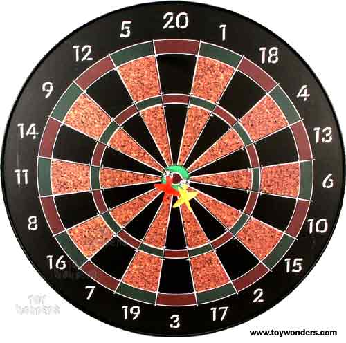 80212 Magnetic Darts Target Board. 15.75" diameter safe & magnetic dart game comes with six 3.25" magnetic head darts. Dart board is sectioned from 1 to 20 points. Great tool for teaching young children how to throw. Box size: 16"Lx 16"Wx 1"H.