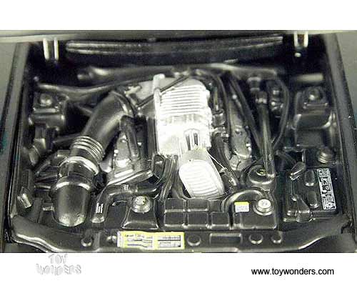 2003 Ford SVT Mustang Cobra 9.75"L die cast sports car features opening doors, trunk, & hood and detailed engine and components. Display platform included.
