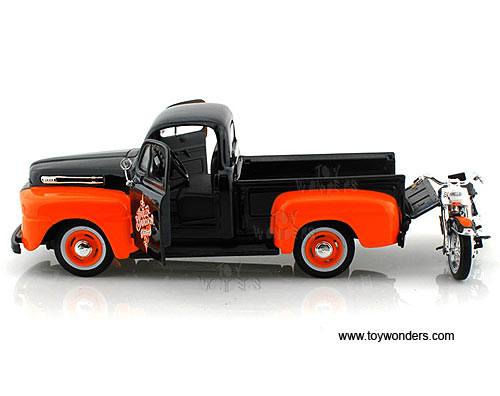 Maisto HD - Ford F-1 Pickup Harley-Davidson / FLH DUO Glide Motorcycle (1948/1958, 1/24 scale diecast model car/1/24 scale diecast model car, Black & Orange) 32180BO