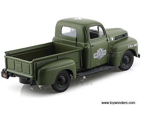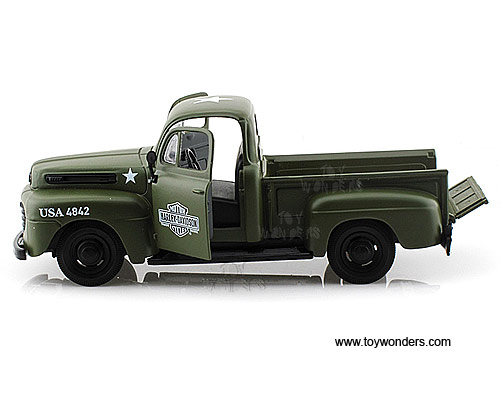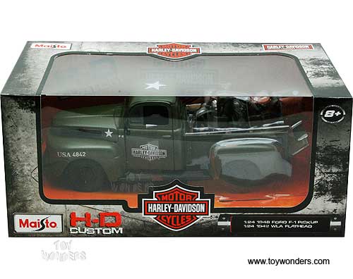 Maisto HD - Ford F-1 Pickup Harley-Davidson / WLA Flathead Motorcycle (1948/ 1942, 1/24 scale diecast model car, Green Army) 32185