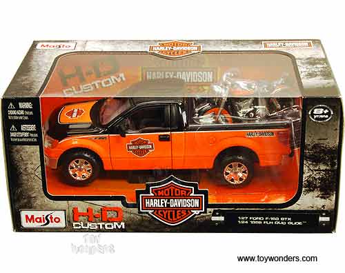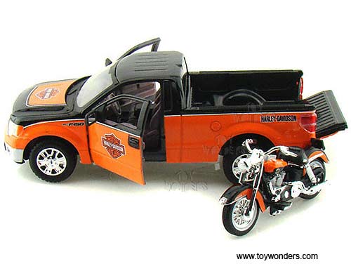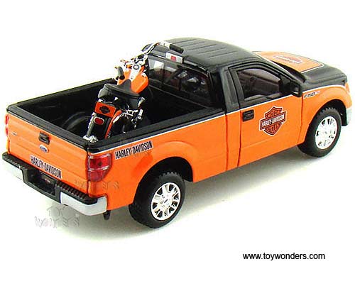 Maisto HD - Ford F-150 STX Pickup Harley-Davidson / FLH Duo Glide Motorcycle (2010/1958, 1/27 scale diecast model car/1/24 scale diecast model car, Black & Orange) 32173