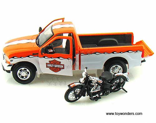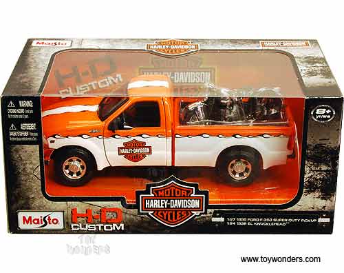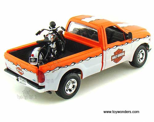 Maisto HD - Ford F-350 Super Duty Pickup Harley-Davidson / EL Knucklehead Motorcycle (1999/1936, 1/27 scale diecast model car/1/24 scale diecast model car, Orange & White) 32172OW