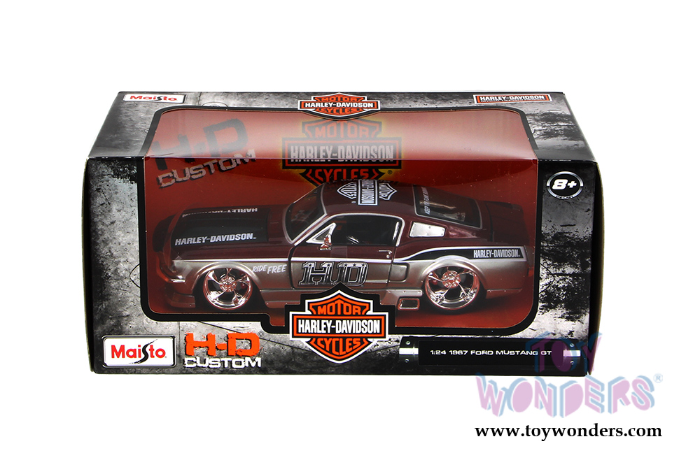 Maisto HD - Ford Mustang GT Hardtop Harley-Davidson (1967, 1/24 scale diecast model car, Silver & Metallic Red) 32168BN