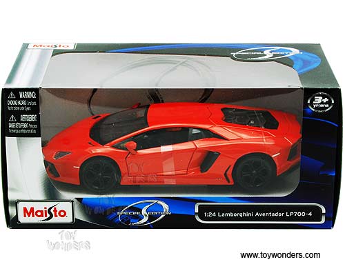 31210OR Maisto - Lamborghini Aventador LP700-4 Hard Top. 1:24 scale diecast collectible model car. This Lamborghini Aventador LP700-4 is a 7.25"Lx 3"Wx 1.75"H die cast metal car with free wheeling, openable doors & trunk. Each individually packed in a window box WB, and box size is 9"Lx 4.5"Wx 4"H. 31210OR is in ORANGE color. This Lamborghini Aventador LP700-4 is manufactured by Maisto.