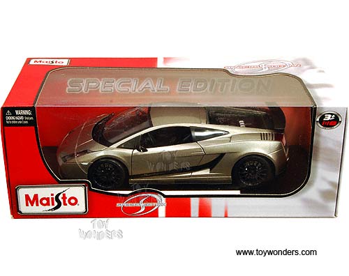 31149GY Maisto Special Edition - 2007 Lamborghini Gallardo Superleggera Hard Top. 1:18 scale diecast collectible model car. This Lamborghini Gallardo Superleggera is a 9"Lx 3.5"Wx 2.25"H diecast metal with openable doors, hood & trunk. Sits on a display plaque. This Lamborghini Gallardo Superleggera is manufactured by Maisto. Item 31149 is in GREY color. Individually packed in a window box. Box size: 13"Lx 6.5"Wx 5"H.