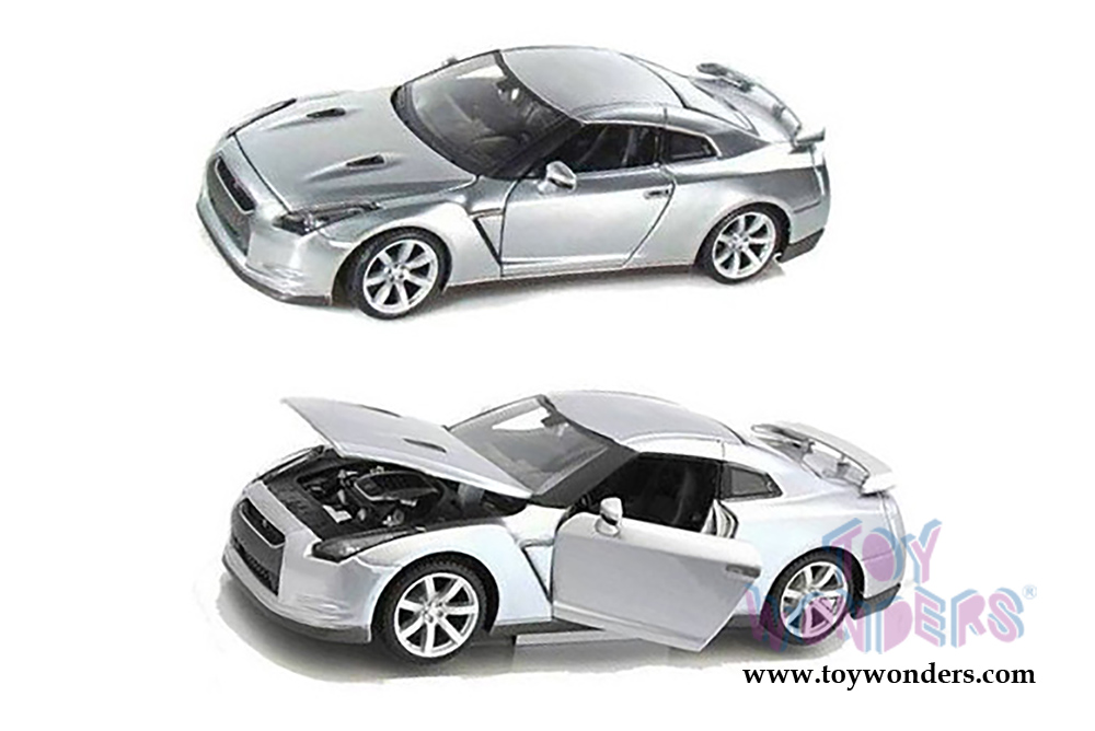 31294SV Maisto - Nissan GT-R Hardtop. 1:24 scale diecast collectible model car. This Nissan GTR measures 7"L x 2.5"W x 2"H diecast classic car with openable doors and hood. This Nissan GTR is manufactured by Maisto. 31294SV is in SILVER color. Individually packed in a window box. Window Box size: 9"L x 4.5"W x 4.25"H.
