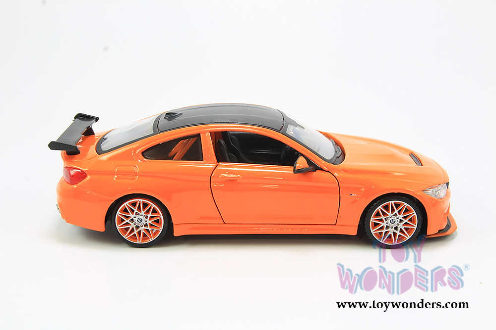 31246OR Maisto - Special Edition | BMW M4 GTS Hardtop. 1:24 scale diecast collectible model car. This BMW is a 7.75"L x 3.25"W x 2.25"H diecast metal car with freewheeling, openable doors. This BMW M4 is manufactured by Maisto. Individually packed in a window box. Box size: 9"L x 4.5"W x 4"H. Item 31246OR is in Orange color.