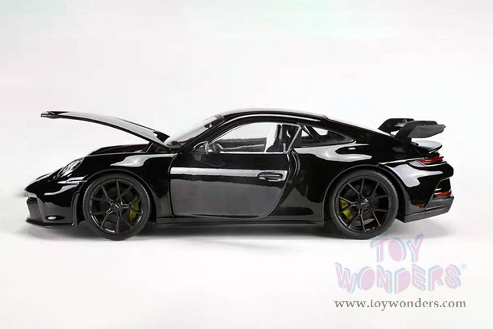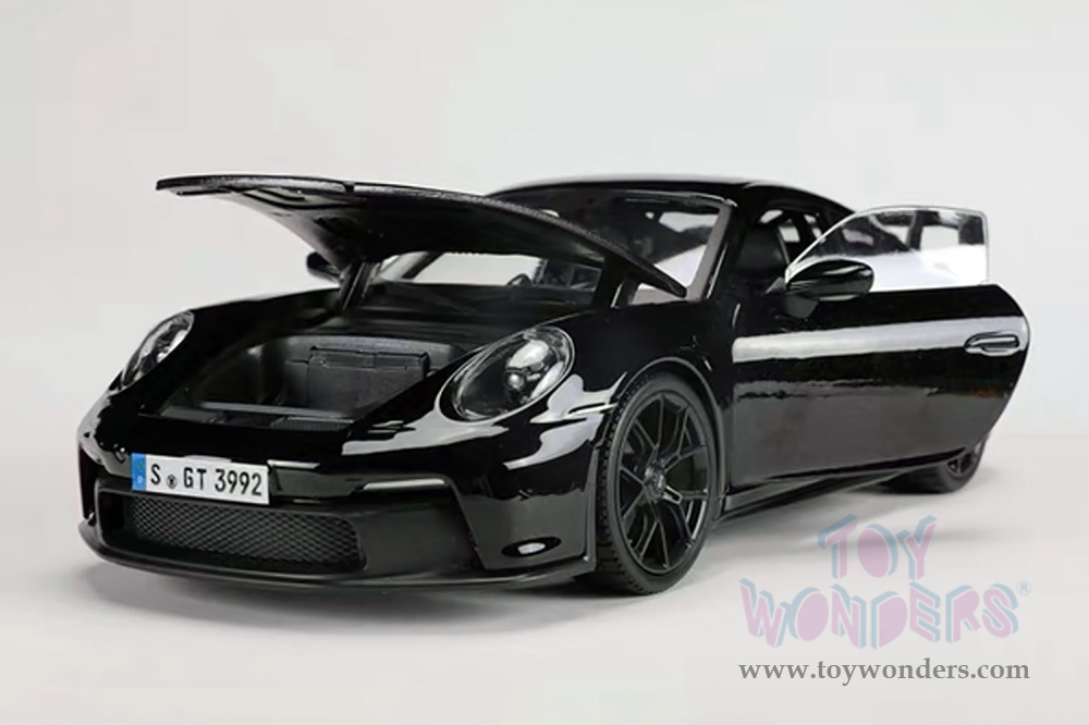 31458BK Maisto - Special Edition | 2022 Porsche 911 GT3 Hardtop. 1:18 scale diecast collectible model car. These Porsche are 9.25"L x 4.5"W x 2.75"H diecast metal car with freewheeling. Openable doors and hood. Full function steering, four wheel suspension, and detailed chassis. This Ford GT is manufactured by Maisto. Each individually packed in a window box. Window Box size is 13"L x 6.75"W x 5"H. 31458BK is in Black.
