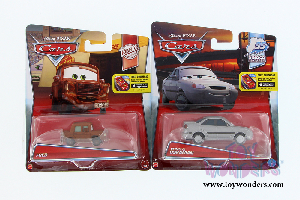 Y0471/9885 Mattel Disney Pixar - Cars Mainlines Assortment. 1:64 scale diecast model. These cars are aproximately 3" long. Each car has a free download to unlock the car in the Daredevil Garage app. Manufactured by Mattel. Each car individually blister carded. Card size: 5.5"L x 6.5"W.