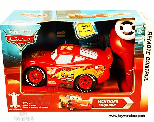 N8049/999A Mattel Disney Pixar - R/C Lightning McQueen. This Lightning McQueen is a 8.5"L x 5"W x 3"H radio controlled car. Includes transmitter. Requires 5 "AA" batteries (not included). Features 27 MHz, 20ft/ 7m and full fuction. Each car individually packed in a window box. Box size: 12.5"L x 5.5"W x 8"H. This radio controlled Lightning McQueen is manufactured by Mattel. N8049/999A is in assorted styles. Note: This item contains no any diecast metal.