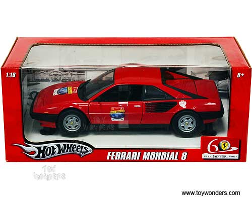 L7340 MATTEL Hot Wheels - Ferrari Mondial 8 Hard Top 60th Anniversary (1947 - 2007). 1:18 scale diecast collection model car. This Ferrari is a 10"L x 3.5"W x 2.75"H die-cast metal car with openable hood, doors & trunk. Individually packed in a window box. Box size: 12"L x 6"W x 5"H. This Ferrari Mondial 8 is manufactured by Mattel Hot Wheels. L7340 is in RED color.