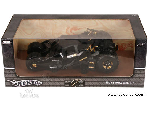 G9931BK MATTEL Hot Wheels - Batman's Batmobile car (The Bat Tank) from the 2005 movie Batman Begins. 1:18 scale diecast collectible model car. This Batmobile is a 9"Lx 5"Wx 3"H die cast metal car. This Batmobile has been produced with meticulous attention paid to each detail with the intent of creating the most authentic model possible. Hot Wheels diecast collection. Individually packed in a window box. Box size: 13.5"Lx 6.75"Wx 5"H. G9931 in BLACK color.