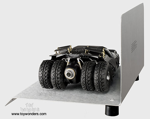 The Dark Knight Trilogy BATMOBILE depicted in Christopher Nolan’s films is a tank-like machine modified from a military vehicle called THE TUMBLER. The films’ production designer described it as a car boasting "Lamborghini lines combined with tank functions: an armored riot control vehicle, complete with machine guns shooting rubber bullets and a largecannon mounted on the front.” This is the largest BATMOBILE ever, easily straddling a three-lane highway. Four street-ready cars were constructed, with each vehicle possessing sixty-five carbon fiber panels and costing $250,000 to build.