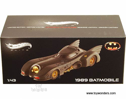 X5494/9964 Mattel Hot Wheels Elite - 1989 Batmobile. 1:43 scale diecast collectible model. This 89 Batmobile aproximately 4" lone, and manufactured by Mattel. Individually packed in a hard plastic case. Case size: 6"L x 3"W x 2.5"H. X5494/9964 is in BLACK color. Limited Edition 1 of 10000 pcs.