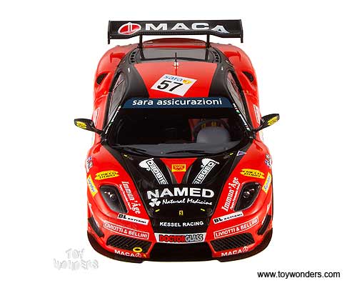 W1776/9964 Mattel Hot Wheels Elite - Ferrari F430 GT3 Kessel Racing #57 - Italian GT3 2009 Championship Winner. 1:43 scale diecast collectible model. Sits on a display plaque. This Ferrari F-430 GT-3 is a 4"L x 1.75"W x 1"H die-cast race car. W1776/9964 is in ORANGE color. Sponsored by sara, Viridea, Maca, Moreschi, and more. This Ferrari F430 GT3 is manufactured by Mattel. Individually packed in a hard plastic case. Case size: 6"L x 3"W x 2.5"H. Limited Edition 1 of 5000 pcs.