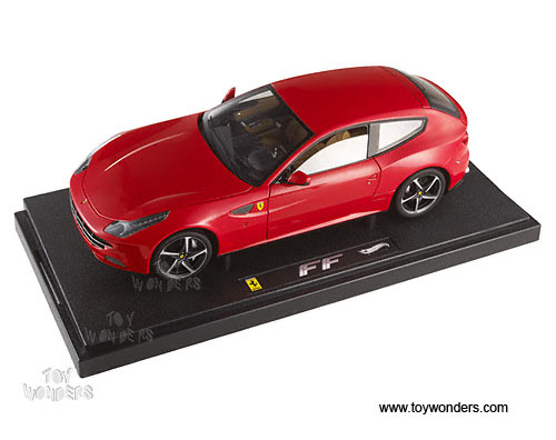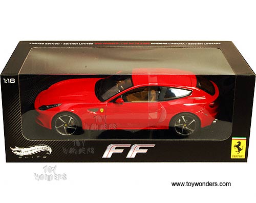 W1105/9964 Mattel Hot Wheels Elite - Ferrari FF Hard Top. 1:18 scale diecast collectible model car. This Ferrari FF is a 10.5"Lx 3.75"Wx 2.75"H die cast metal car with openable hood, doors & trunk. Sits on a display plaque. This Ferrari FF is manufactured by Mattel. W1105/9964 is in RED color. Individually packed in a window box. Box size: 13.25"Lx 6.75"Wx 5"H. Limited edition 1 of 5000 pcs.