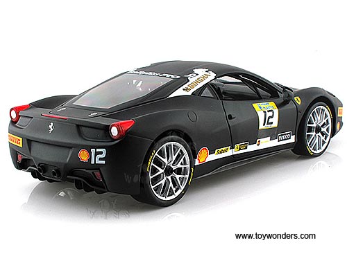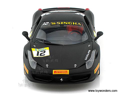 BCT90/9964 Mattel Hot Wheels - Ferrari 458 Challenge Hard Top #12. 1:18 scale diecast collectible model car. This Ferrari 458 Challenge features openable doors. This Ferrari 458 Challenge is manufactured by Mattel. Individually packed in a window box. Box size: 13.25"L x 6.75"W x 5"H. BCT90 is in MATT BLACK color.