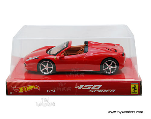 Mattel Hot Wheels - Ferrari 458 Spider Convertible (1/24 scale diecast model car, Red) BLY64