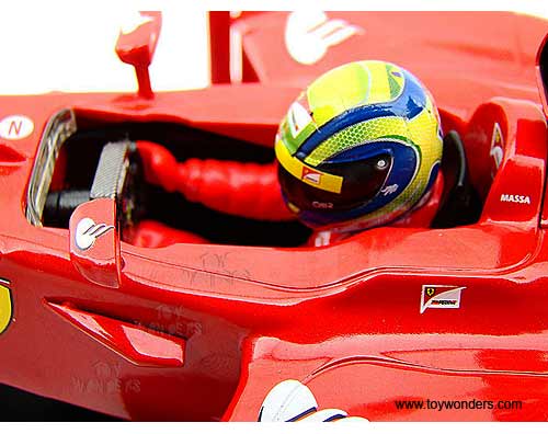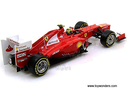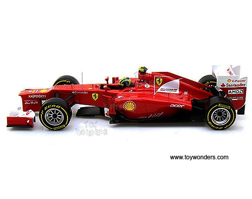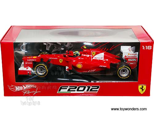 X5521/9964 Mattel Hot Wheels Racing - Ferrari F1 F2012 F. Massa #6. 1:18 Scale diecast collectible model car. This Ferrari F-1 is an 11"L x 3.75"W x 2.5"H diecast metal racing car. Sits on a display plaque. Sponsored by AMD, Shell V-Power, acer, Fiat, Santander, and more. This Ferrari F 1 Formula is manufactured by Mattel. X5521/9964 is in RED color. Individually packed in a window box. Window Box size: 13.25"L x 6.5"W x 5"H.