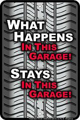 SMM2 Garage Happens metal sign. A collection of yesterday's signs. Great for decorating homes, offices, restaurants, etc. Aluminum metal sign. Size approximately is 8" x 12".