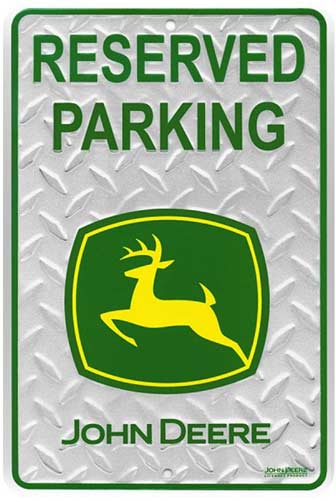 SPSJDD John Deere Farm Tractor Reserved Parking metal sign. Farm equipment collector metal signs. A collection of yesterday's signs. Great for decorating homes, offices, restaurants, etc. Aluminum metal sign. Size approximately is 8" x 12".