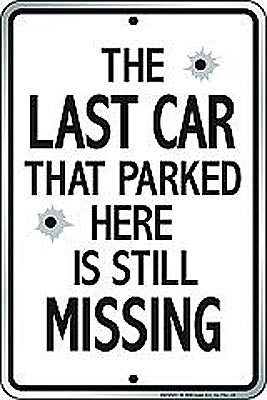 SPSNT2 Last Car Missing nostalgic metal sign. A collection of yesterday's signs. Great for decorating homes, offices, restaurants, etc. Aluminum metal sign. Size approximately is 8" x 12".