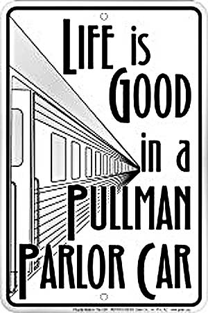 SPSRC6 Life Is Good In A Pullman Parlor Car metal sign. Locomotive train Collector metal signs. A collection of yesterday's signs. Great for decorating homes, offices, restaurants, etc. Lithographed steel metal. Size approximately is 8" x 12".