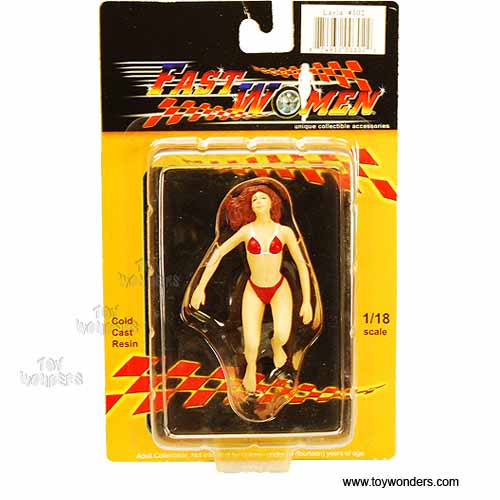 302R Motorhead Miniatures Figurine - 1:18 scale Fast Woman Layla in RED. Hand painted cold-cast resin. This 3.5" figure is great for decorating 1:18 scale cars and dioramas. These figures are manufactured by Motorheads. Individually packed in a blister card. Card size: 5" x 7.75". 302