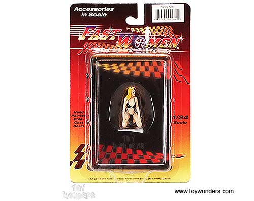 284BK Motorhead Miniatures Figurine - 1:24 scale Fast Woman Nancy in BLACK. Hand painted cold-cast resin. This 1.75" figure is great for decorating 1:24 scale cars and dioramas. These figures are manufactured by Motorheads. Individually packed in a blister card. Card size: 5.2" x 7.75". 284