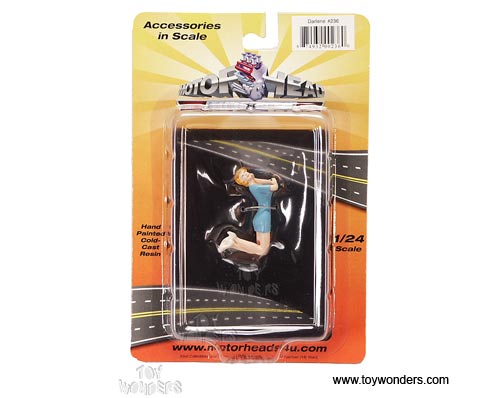 236BU Motorhead Miniatures Figurine - 1:24 scale Lady Darlene in BLUE. Hand painted cold-cast resin. This figure is about 2" long and great for decorating 1:24 scale cars and dioramas. These figures are manufactured by Motorheads. Individually packed in a blister card. Card size: 5.2" x 7.75". 236