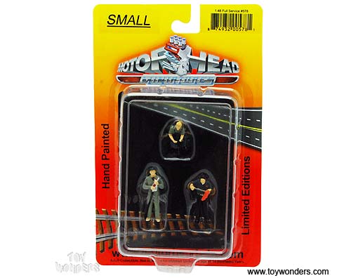 578 Motorhead Miniatures Figurines - 1:48 O Scale Full Service Set of 3. Hand painted cold-cast resin. These figures are great for decorating 1:48 scale cars and dioramas. This set includes three 0.75" to 1.5" H figures. Manufactured by Motorhead. Packed in a blister card. Card size: 5"x 7.75". 12 sets per inner. Limited editions. Note: Vehicle is not included.