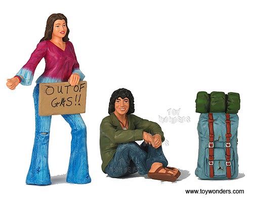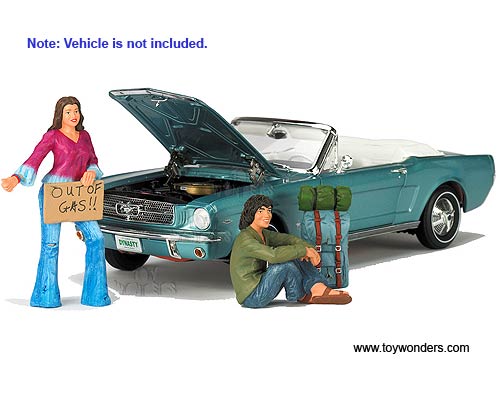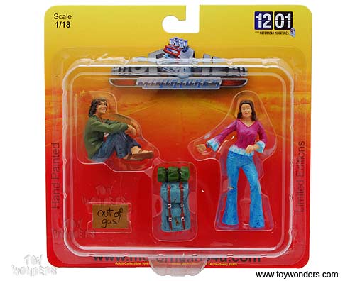 551 Motorhead Miniatures Figurines - 1:18 Scale Out of Gas. Set of 4. Hand painted cold-cast resin. These figures are great for decorating 1:18 scale cars and dioramas. This set includes two figures, luggage, and out of gas sign. Manufactured by Motorhead. Packed in a blister card. Card size: 7.75"x 7.75". 6 sets per inner. Note: Vehicle is not included.