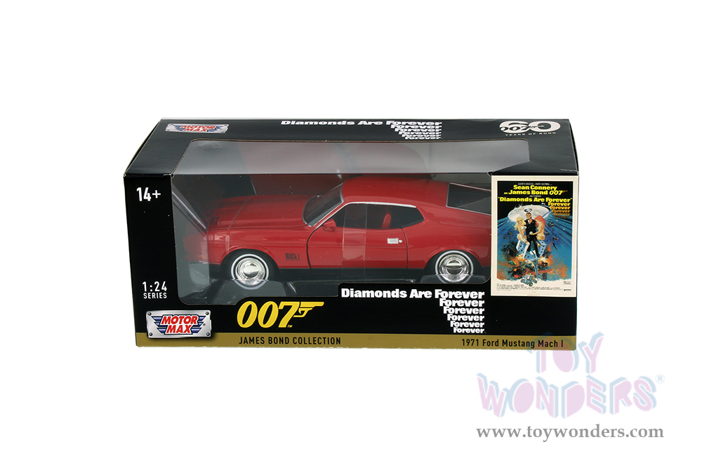 Motormax 007 James Bond Collection - Ford Mustang Mach I - Diamonds Are Forever (60 years of Bond) (1971, 1/24 scale diecast model car, Red) 79851WR