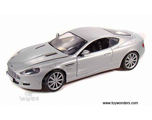 73174SV/4 Motormax - 2006 Aston Martin DB9 Coupe. 1:18 scale diecast collectible model car. This Aston-Martin DB9 is a 10"L x 3.75"W x 2.75"H diecast metal car with steerable front wheels, openable doors, and hood. It sits on a display plaque. This Aston Martin DB9 is manufactured by Motor Max. Individually packed in a window box. Window Box size: 14.25"Lx 6.25"Wx 4.75"H. Item 73174 is in SILVER color.