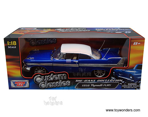 Motormax - Custom Classics - Plymouth Fury Hardtop (1958, 1/18 scale diecast model car, Blue) 79011BU
