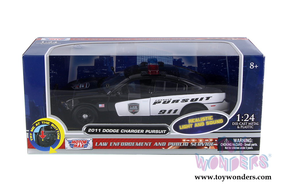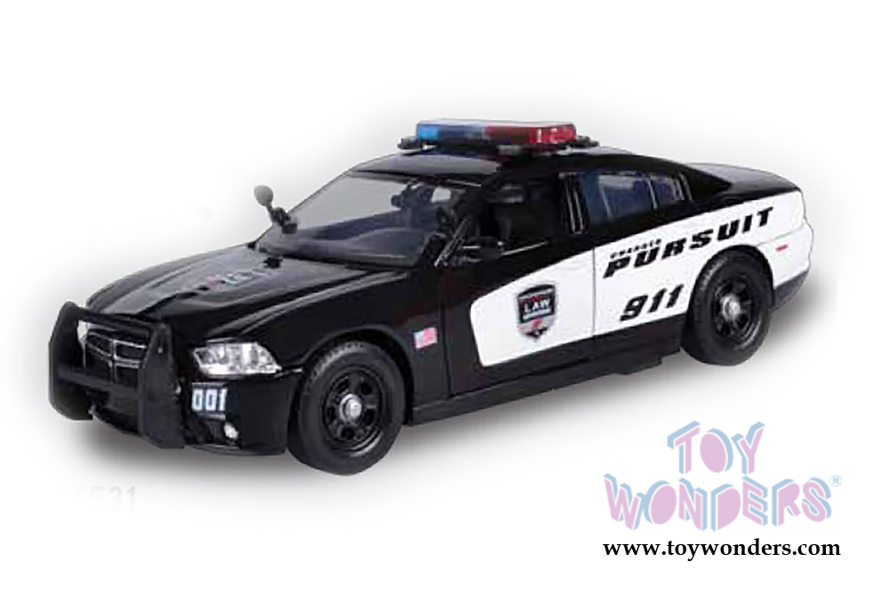 Motormax - Dodge Charger Pursuit Police with Realistic Light and Sound (2011, 1/24 scale diecast model car, Black/White) 79531
