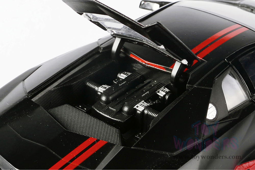 Motormax GT Racing - Lamborghini Reventón Hardtop (1/24 scale diecast model car, Matte Black w/Red stripes) 79509BKR