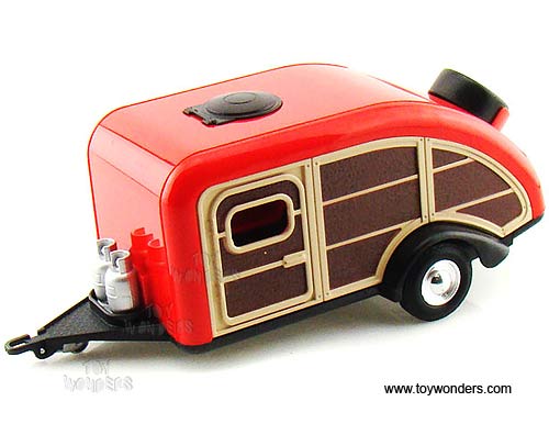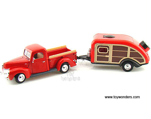 Motormax Premium American - Ford Pick Up Truck w/ Tear Drop Trailer (1940, 1/24 scale diecast model car, Red) 75200