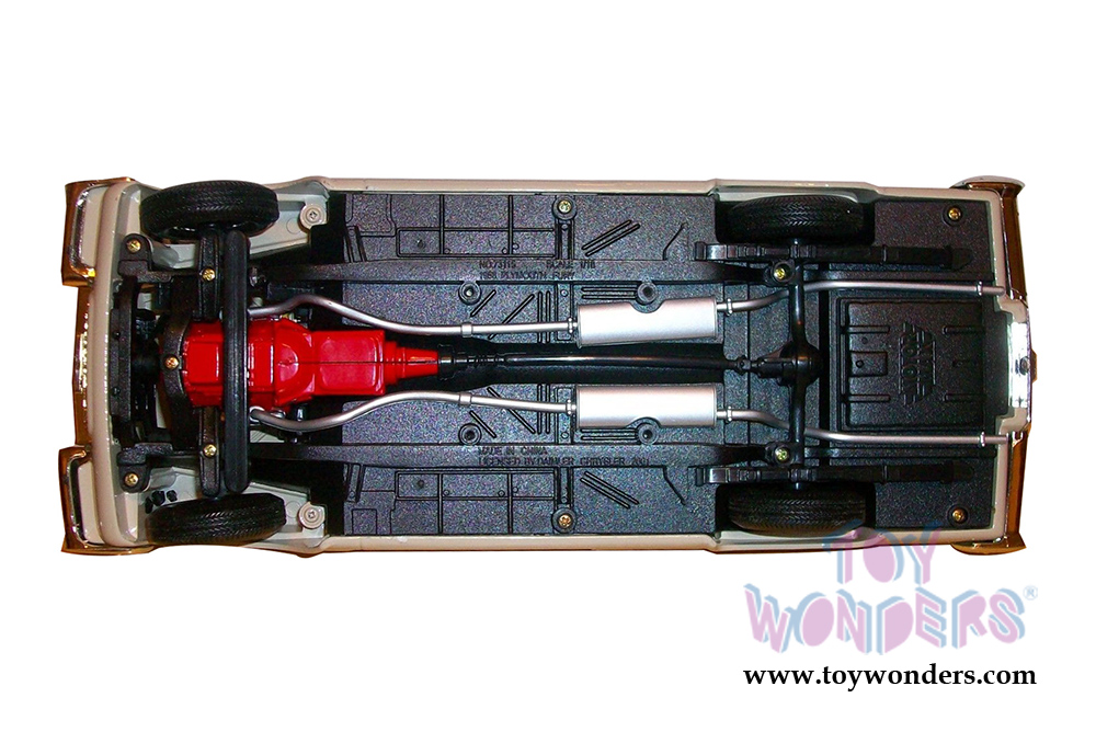 73115TC/BE Motormax Timeless Classics - 1958 Plymouth Fury Hardtop. 1:18 scale diecast collectible model car. This 58 Plymouth Fury measures 11.25"L x 4"W x 2.75"H diecast classic car with openable doors, hood and trunk. Steerable front wheels with a detailed engine and interior. This Plymouth Fury is manufactured by Motor Max Toys. Sits on a display plaque. Individually packed in a decorated window box. Box measures 14"Lx 6.25"Wx 5.5"H. Item 73115TC/BE is in BEIGE color.