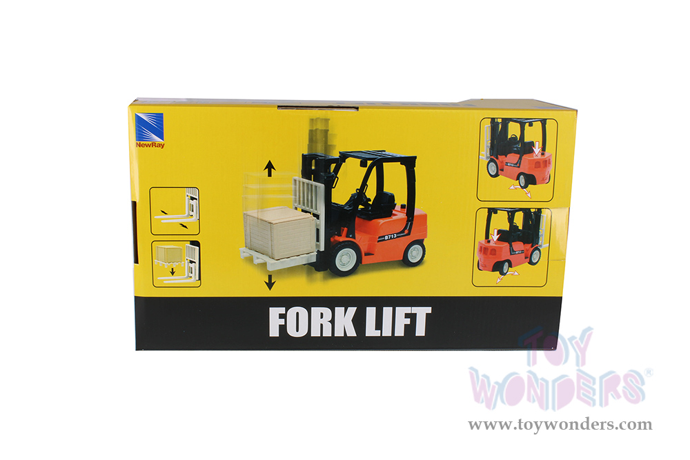 New Ray - Fork Lift with pallet and Crate (1/14 scale hard plastic model car, Orange/Black) 01166