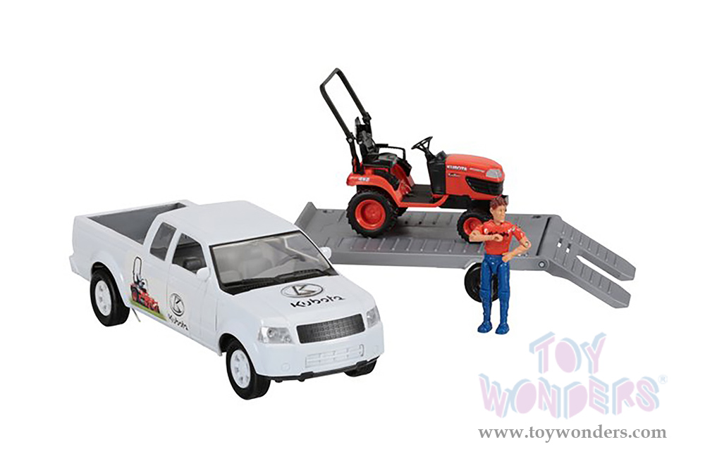 New Ray - Kubota Pick Up with Trailer & Lawn Mower Set (1/18, durable molded construction, Asstd.) SS-33263A