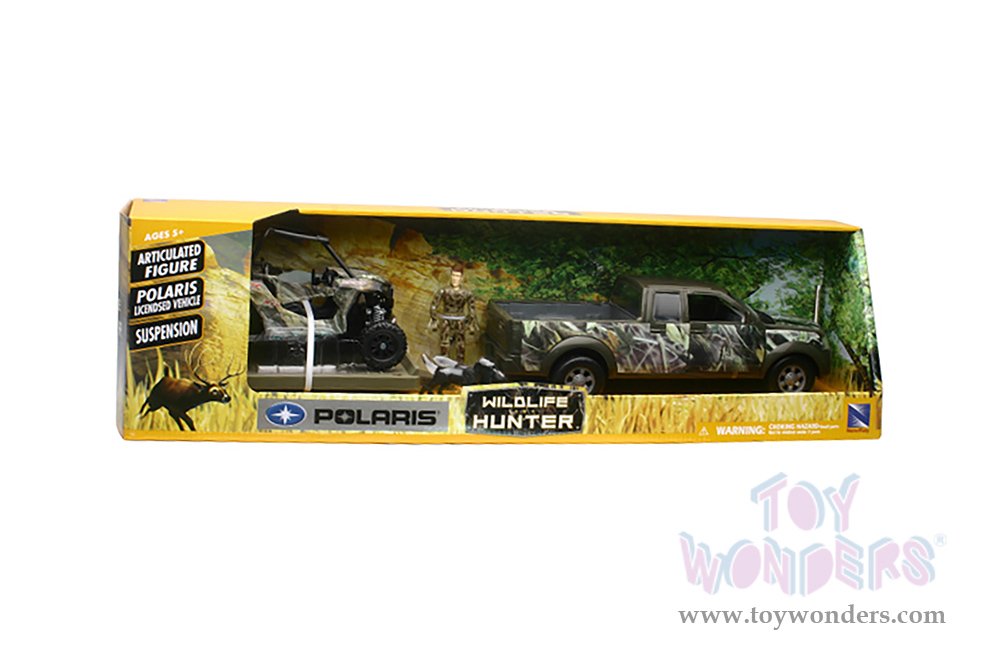 New Ray - Wildlife Hunter Camo Pick Up Truck with Polaris RZR Hunting Set (1/18, diecast model car, Green Camouflage) SS-76456