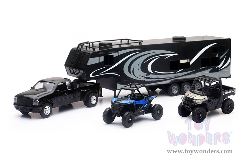 New Ray - Xtreme Adventure | Pick Up with Trailer & Polaris Vehicles Set (1/32, durable molded construction, Asstd.) 37046